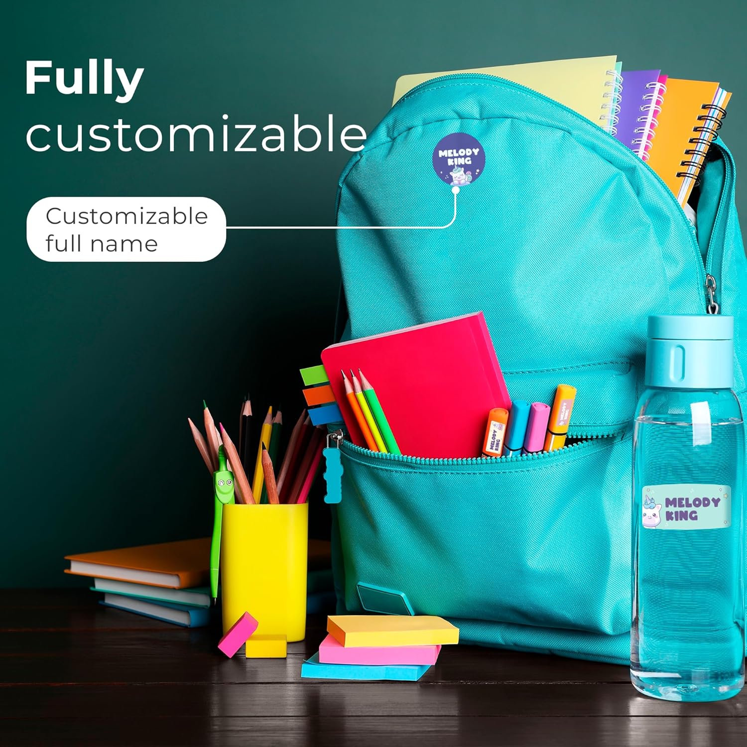 - 💧 Waterproof Stickers & Fade-Resistant — Laminated for long-lasting use, our custom stickers personalized won’t peel, fade, or rub off. Keep your kid’s name visible no matter where the day takes them. These waterproof vinyl labels stick to bottles, lunch boxes, clothing, notebooks, and more. Designed to survive dishwashers, microwaves, freezers, and even washer/dryers!