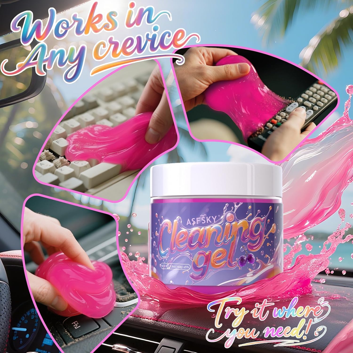 - EFFECTIVE CLEANING WITH STRONG CLEANING POWER.Tired of dust and debris lingering in those hard - to - reach corners?Our brand - new 160g Fruit - scented cleaning gel is here to save the day!This gel is soft and incredibly effective, grabs hold of dust and garbage in air vents, office keyboards, and home blinds' gaps,also for home and office use, cleaning putty for electronics, computer keyboard, laptops, cell phone, calculator, TV remote and furniture.