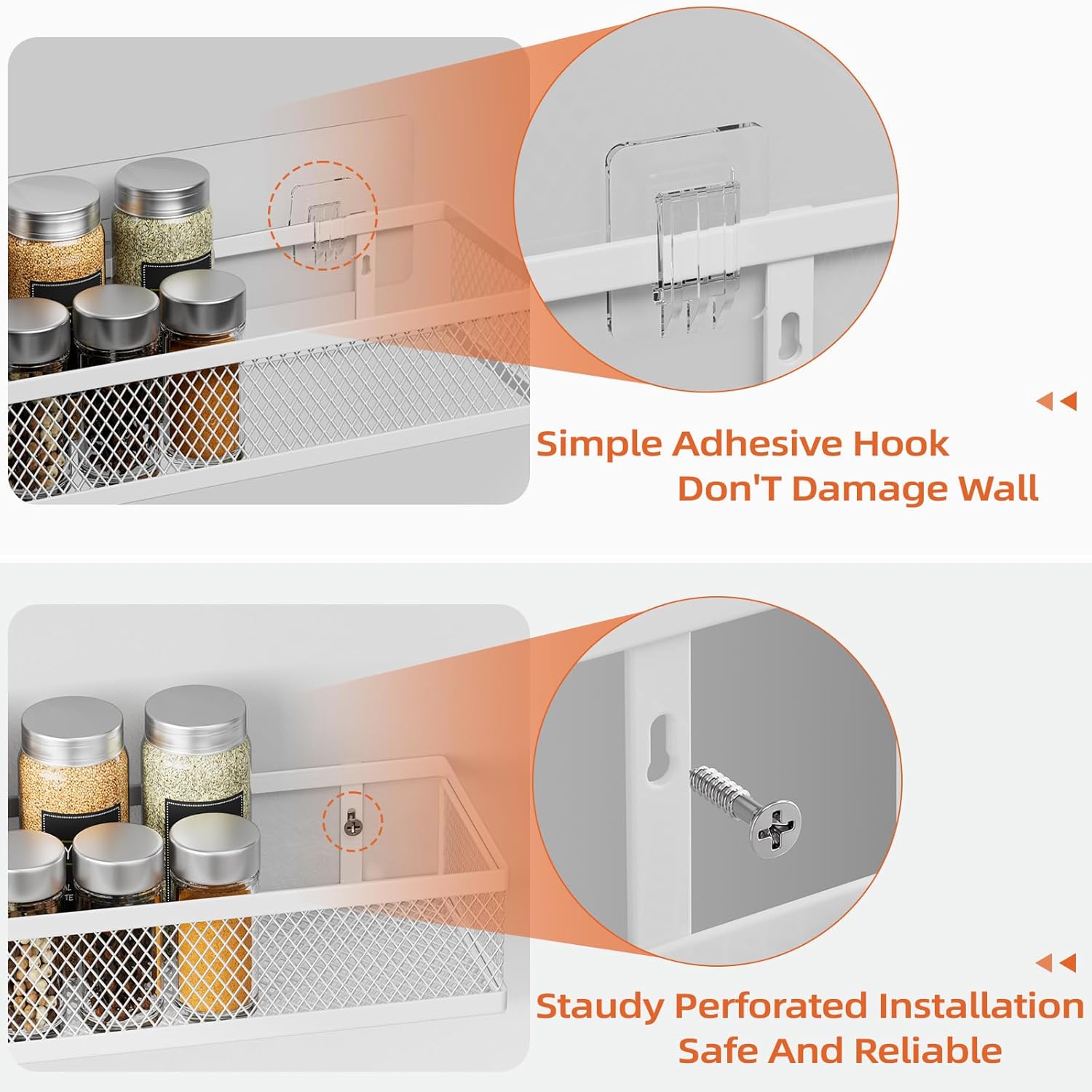 - Multi-Purpose Storage Solution: Use these racks as a spice rack wall mounted, pantry door organizer, or hanging storage baskets organizer. Great for organizing spices, toiletries, cleaning supplies, or decorative items in any room.