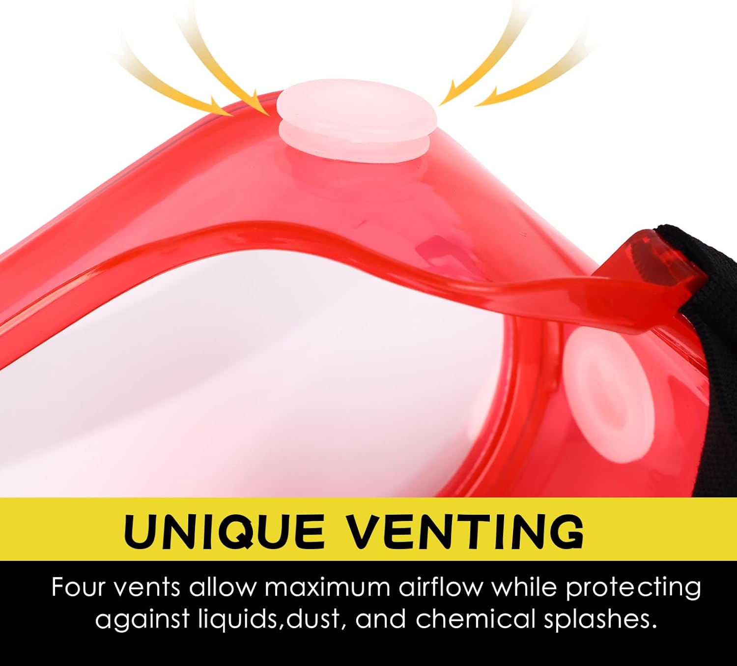 - Anti Fog and Ventilated: the lenses of eye protection goggles provide a clear and transparent visual effect, no dead angle, wide field of vision; 4 Vents allow maximum airflow while protecting eyes against liquids, some airborne particulates and dust