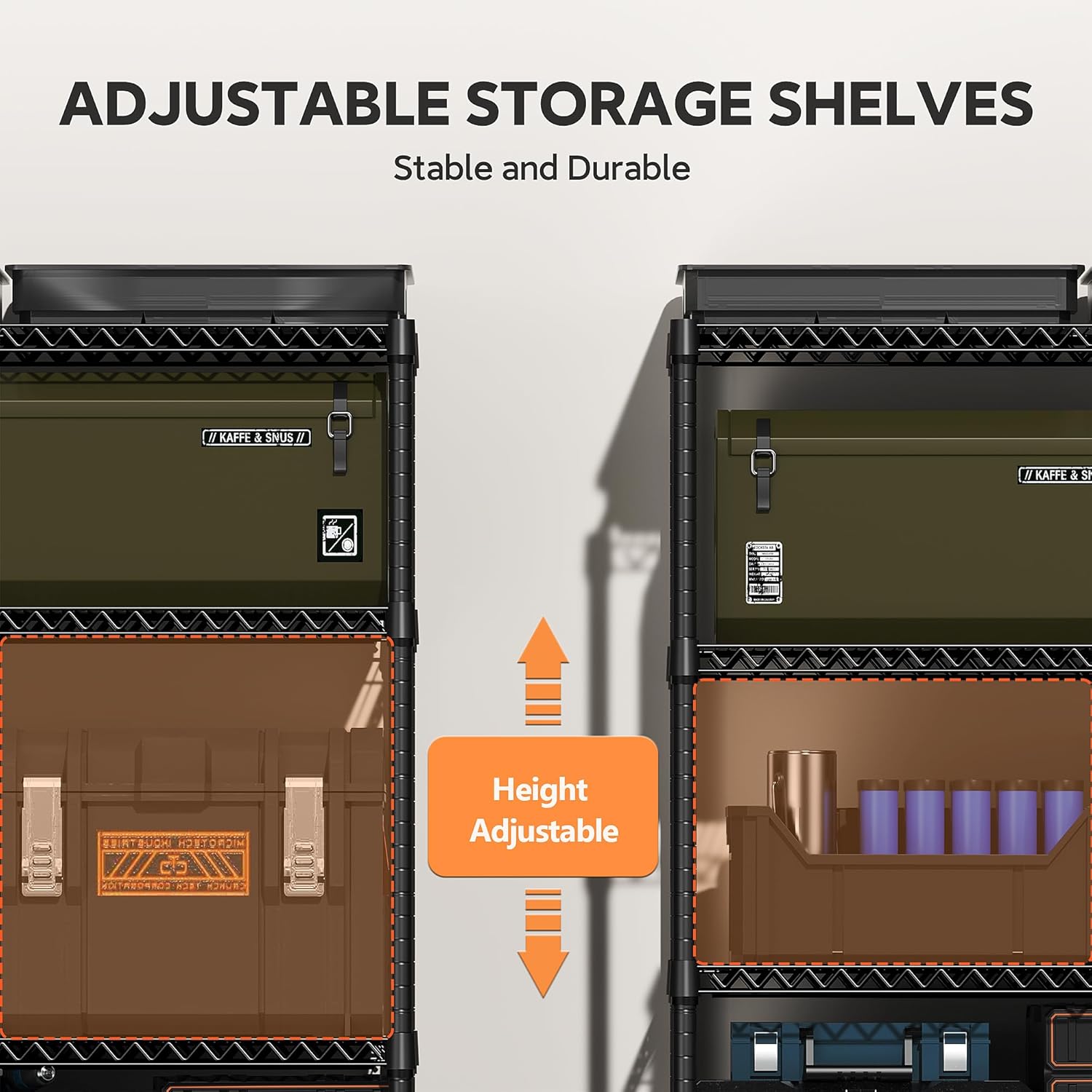 - ADJUSTABLE HEIGHT: Enjoy the option for a completely customizable metal shelving unit. The build allows for height adjustments - giving you the freedom to adjust accordingly to your needs.