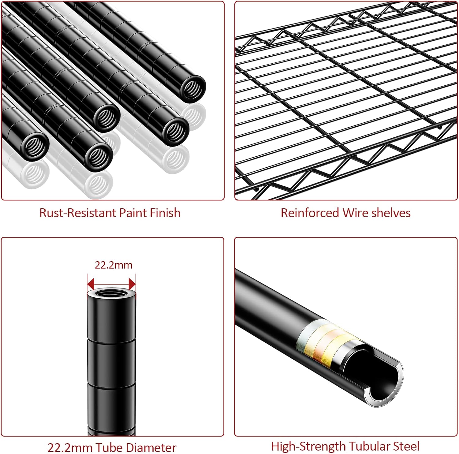 - ăDurable Carbon Steel Constructionă Made from high-quality carbon steel, this rack provides outstanding strength, durability, and corrosion resistance, ensuring reliable performance and long-lasting use with a clean, modern appearance.