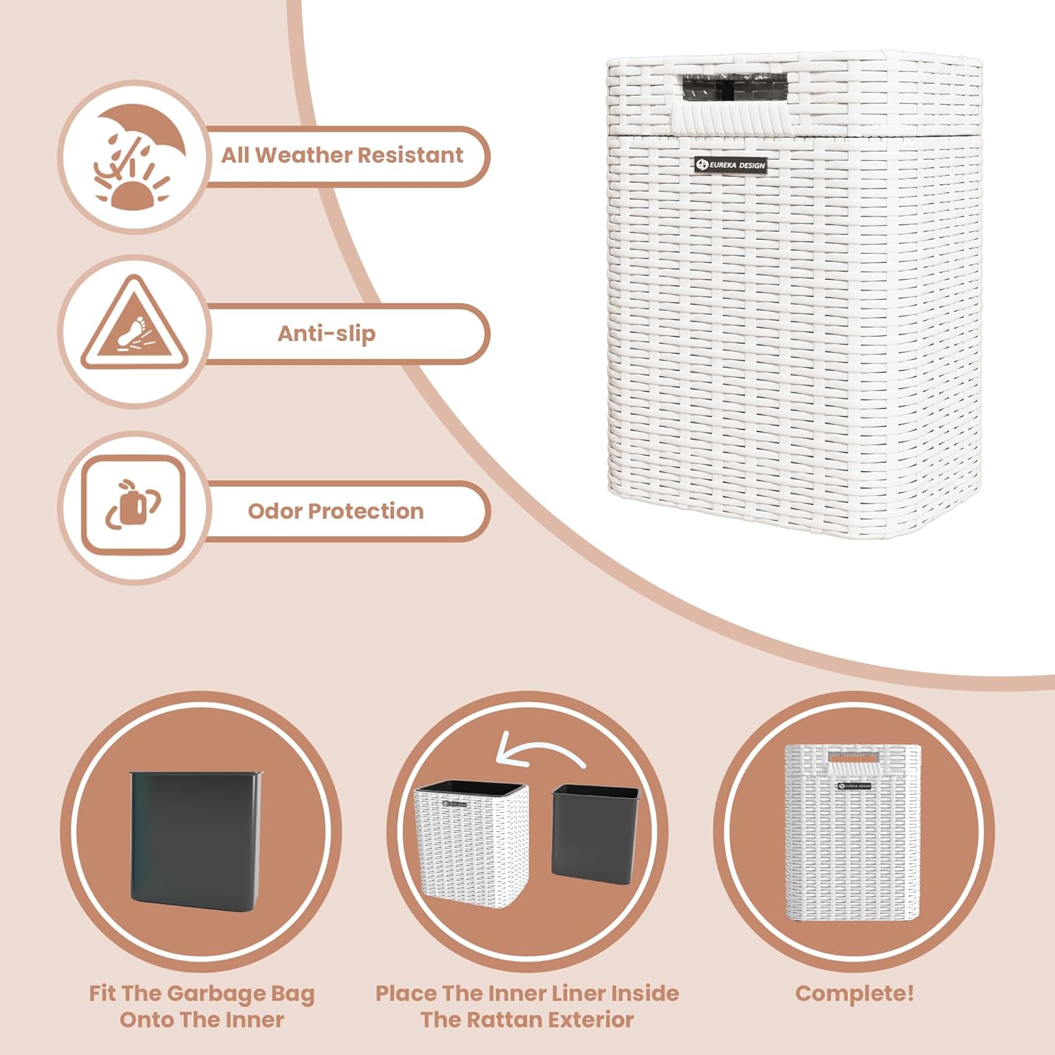 - 【Durable Material & Structure】 Made from high-end thick PE rattan and all-Iron structure, this waste basket is weather-resistant and last for years.