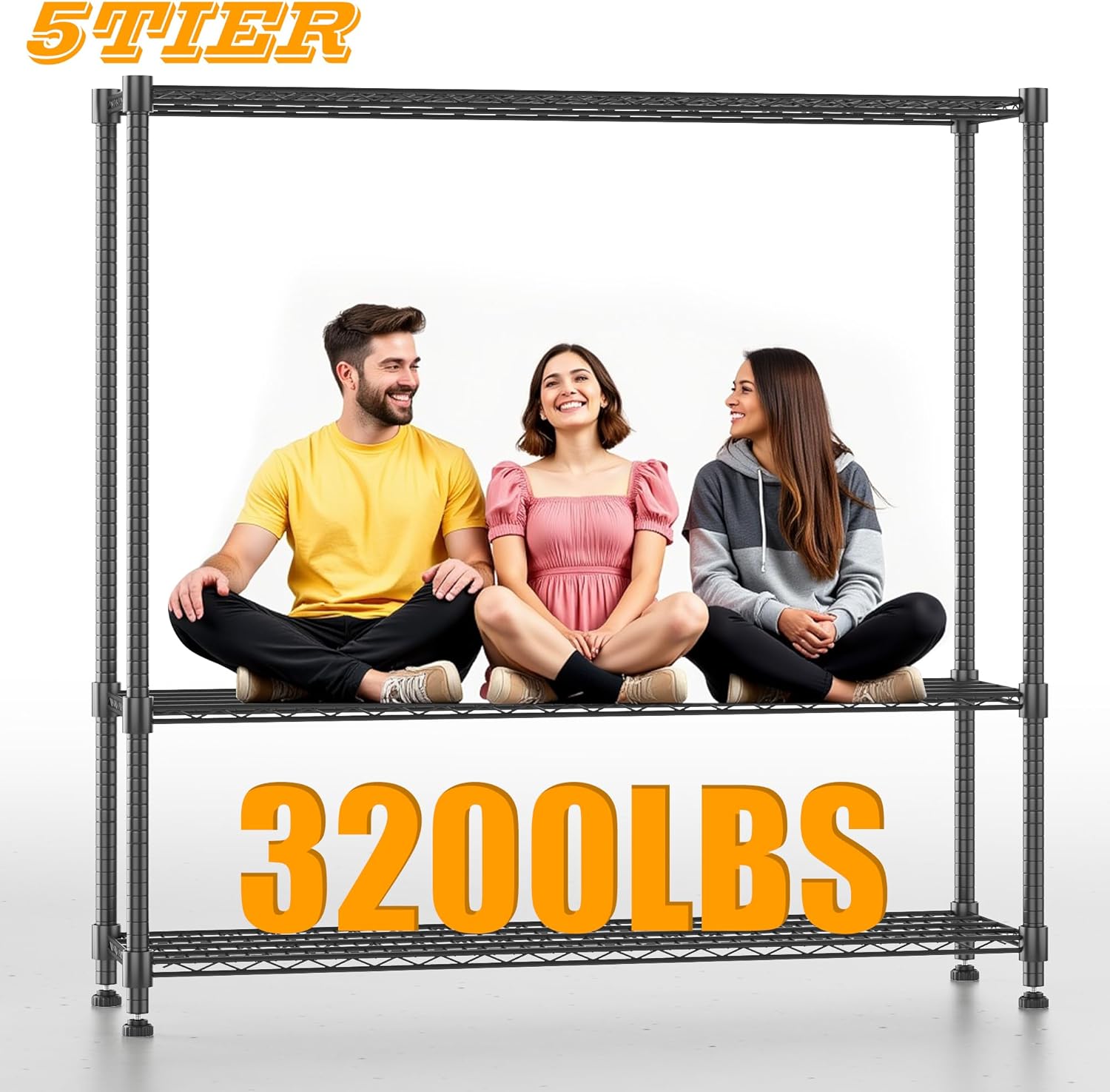 - ăLARGE CAPACITYăOur storage rack is made of sturdy carbon steel and 25mm metal rods and each shelving unit holds up to 640LBs on leveling feet,with a total bearing capacity of 3200LBS