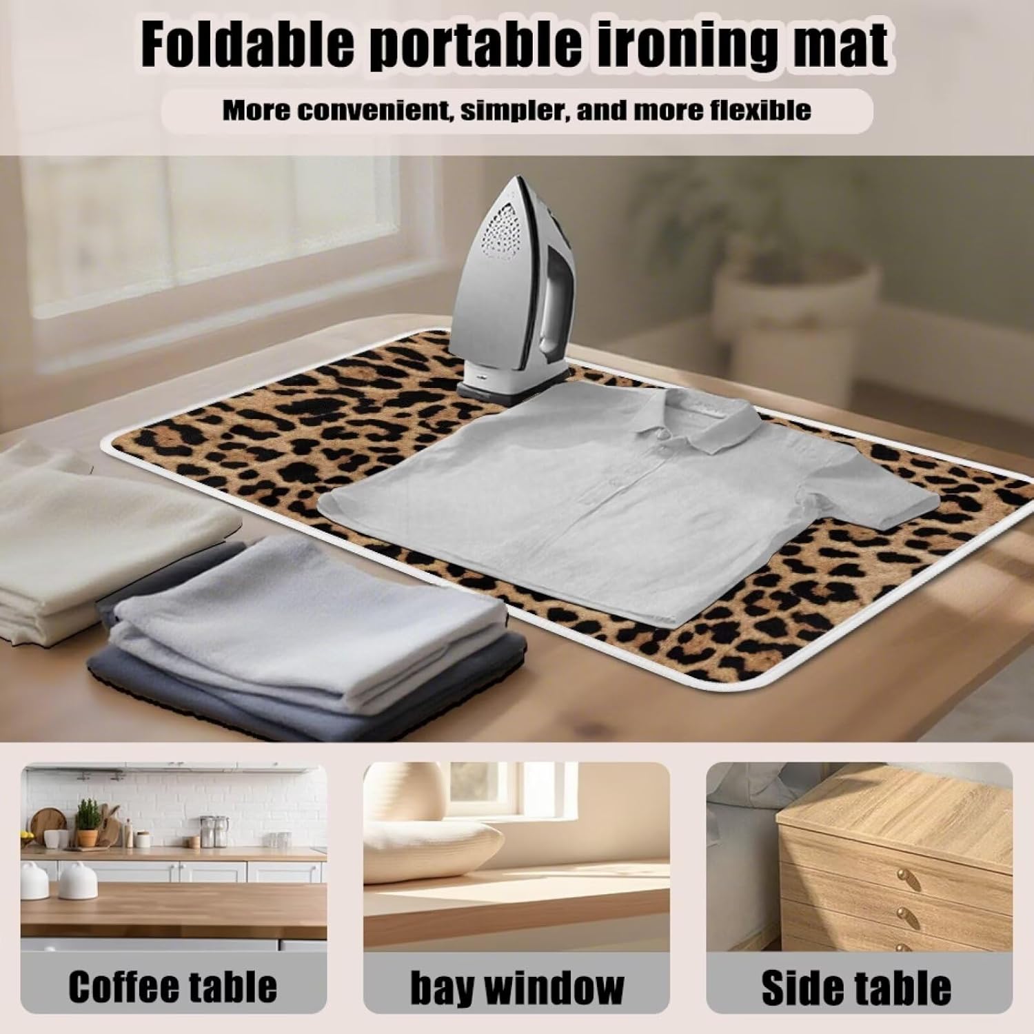 Leopard Print Iron Mat Blanket Travel Foldable Ironing Pad Fabric Ironing Board Cover for Top of Tabletop,Brown Thick & Large Portable Ironing Pads 32 x 16 Inch