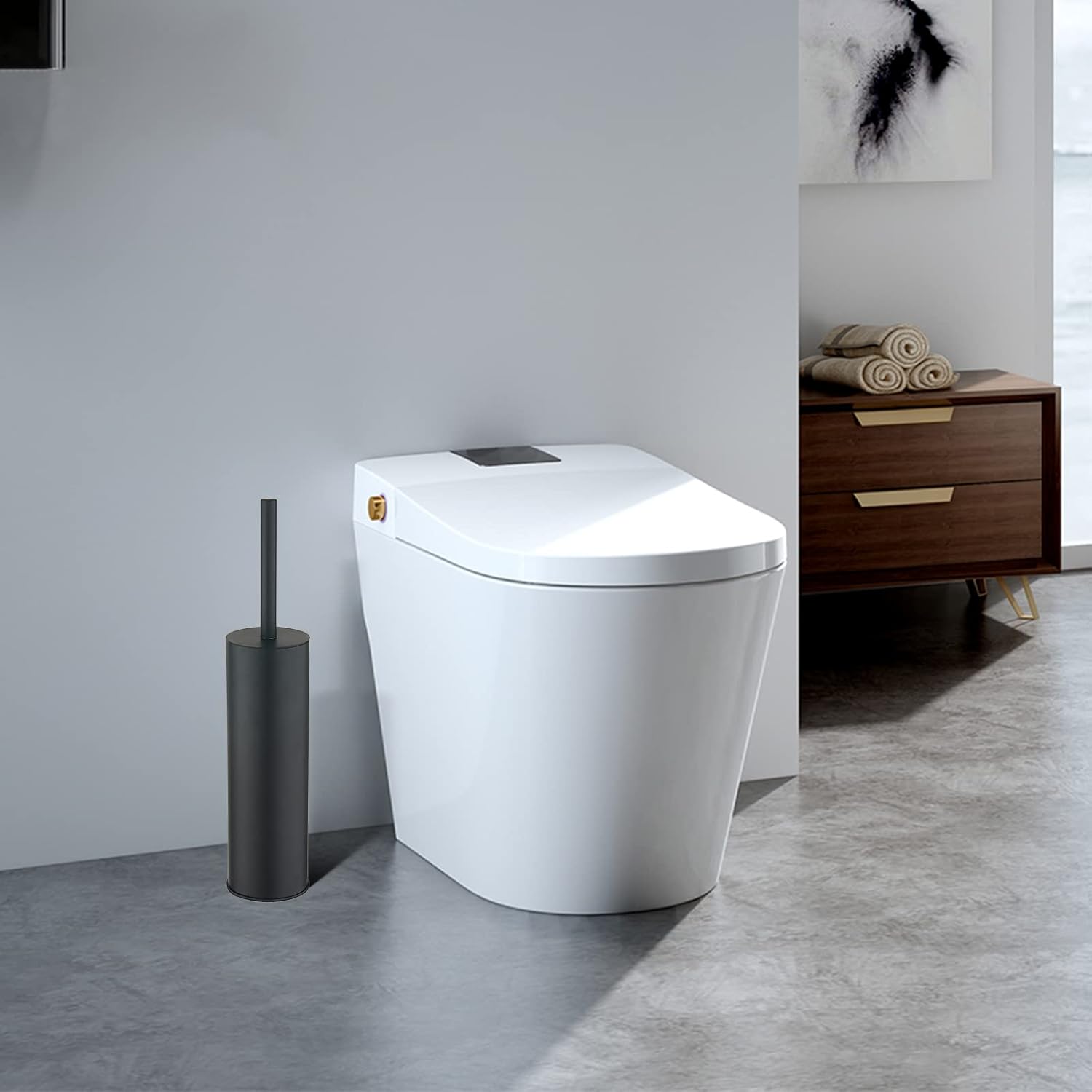 - 4. Closed Design with Non-Slip Base - The sealed holder keeps the brush hidden when not in use, preventing odors from spreading. A black non-slip ring at the base ensures stability and protects tiles from scratches.