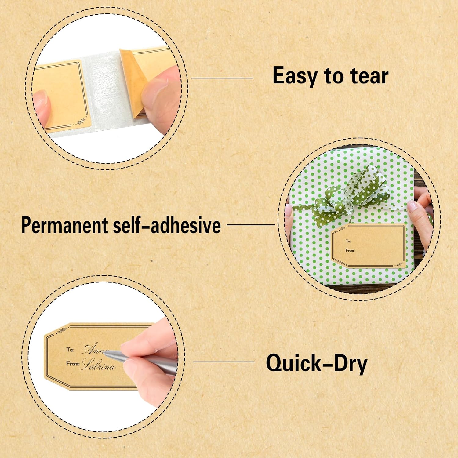 - Good Adhesion- These natural kraft label stickers have good adhesion, can be easily attached to most surfaces, and is not easy to fall off