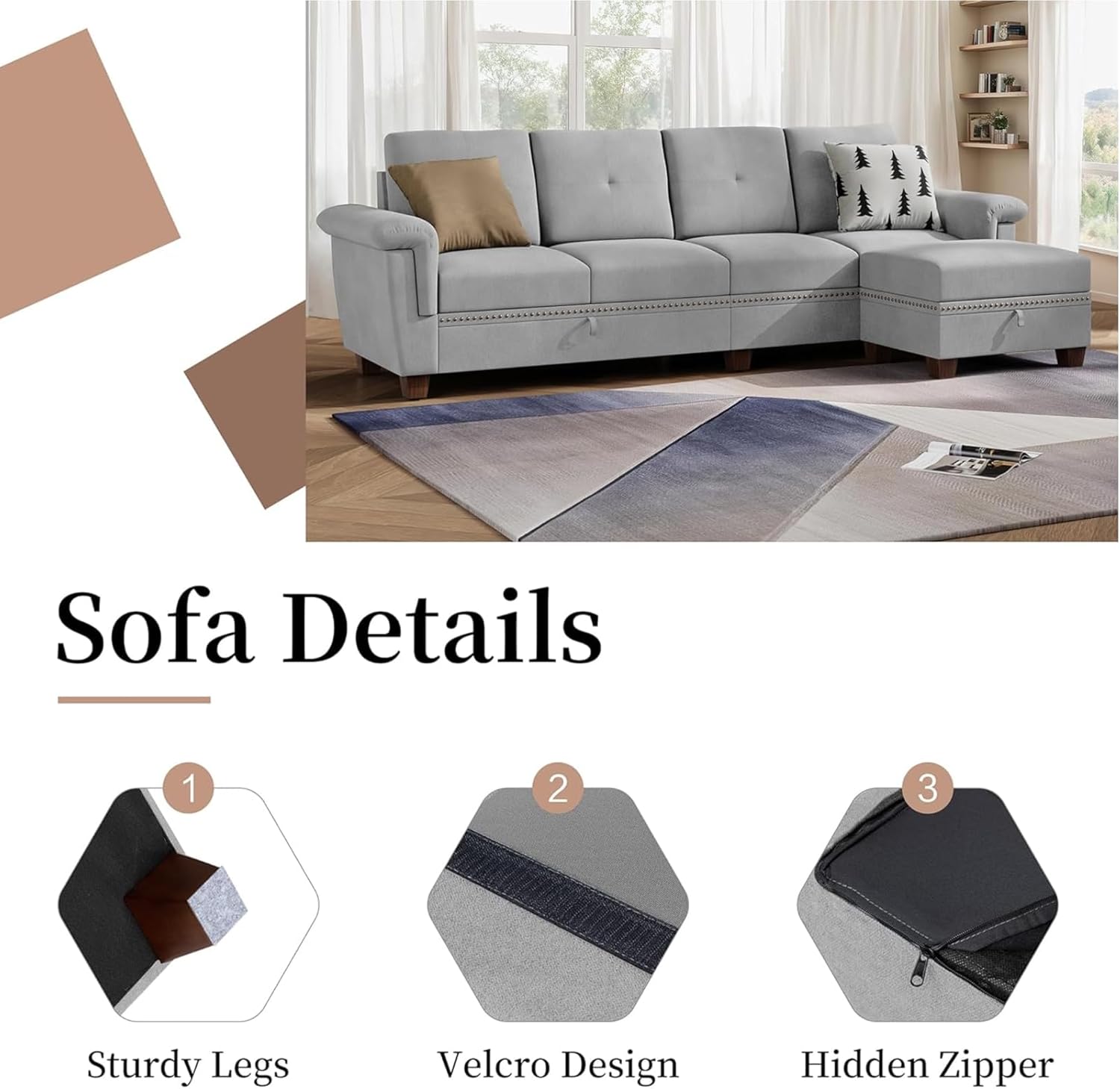 - Built-in Storage Chaise: Hidden storage under the chaise lets you neatly organize blankets, pillows, and remotes, keeping your living space clutter-free and always guest-ready
