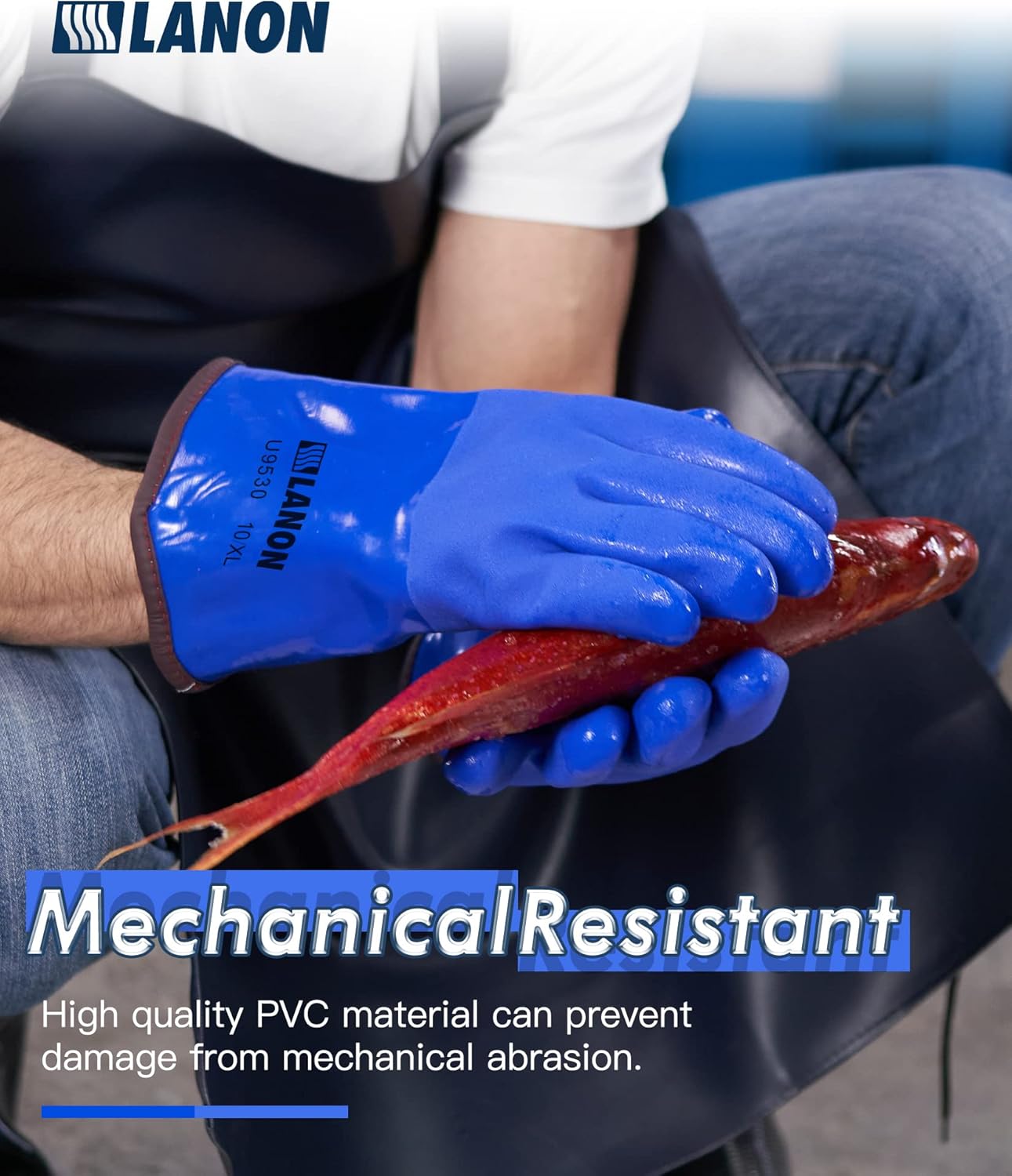 LANON PVC Coated Cold Proof Heavy Duty Gloves, Waterproof Warm Work Gloves for Freezer Work, Chemical & Oil Resistant, Non-Slip, XL (Pack of 2)